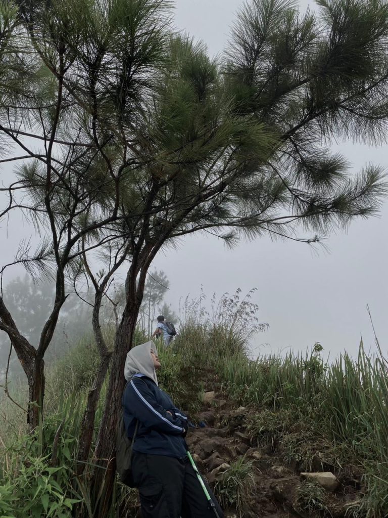 Setelah beberapa waktu, kabut perlahan turun dan menyelimuti jalur. Suasananya berubah jadi lebih sunyi, tapi tetap nyaman untuk dilewati. Semua terasa dekat tanahnya lembap, udara dingin, langkah kaki teman-teman, dan detak jantung yang mengikuti ritme pendakian.